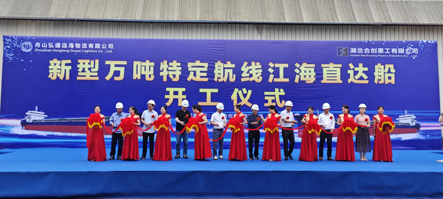 湖北合創(chuàng)重工舉行舟山弘通遠(yuǎn)海物流新型萬(wàn)噸特定航線江海直達(dá)船船建造開(kāi)工點(diǎn)火啟動(dòng)儀式。舟山市港航和口岸管理局、舟山弘通航運(yùn)發(fā)展有限公司、湖北合創(chuàng)重工有限公司等主、承、協(xié)辦單位領(lǐng)導(dǎo)、各工程項(xiàng)目單位代表、部門成員共計(jì)50余人參加儀式。